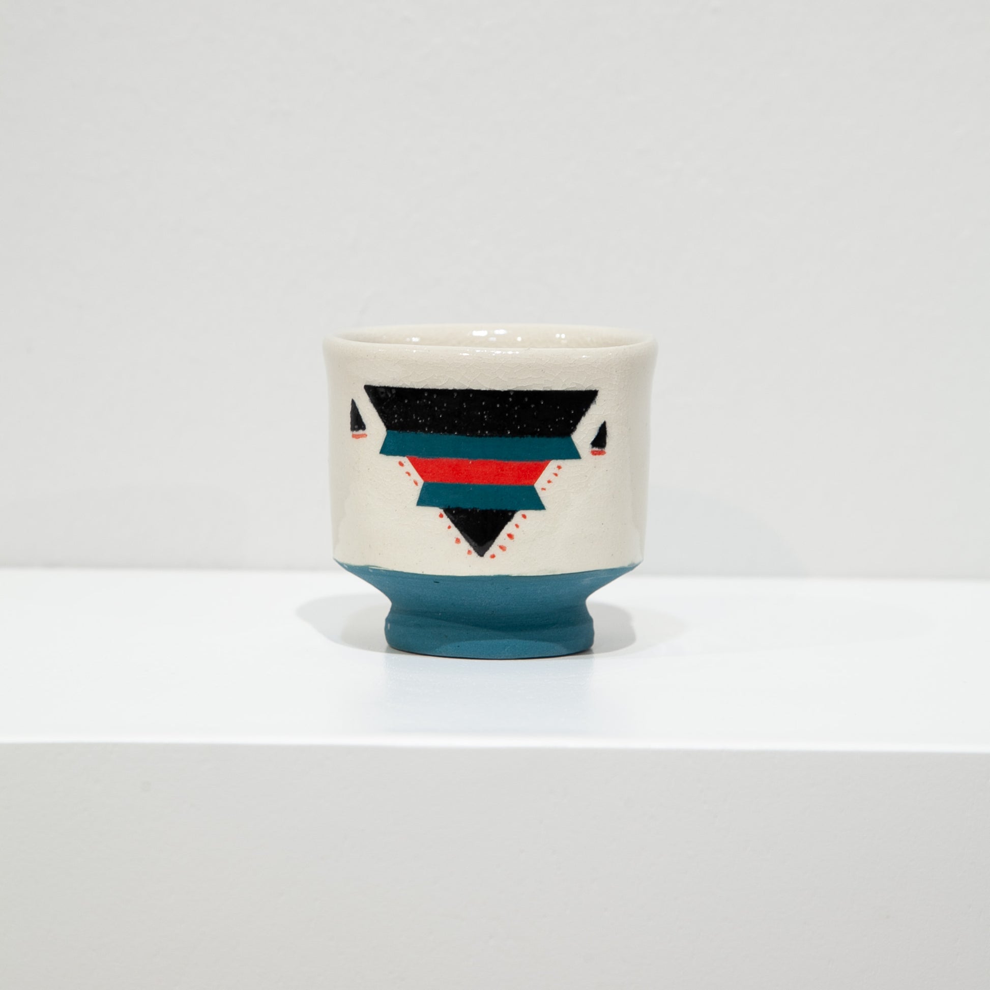 This collaboration brings together two creative worlds—Adrian Quintanar’s masterful ceramics and my painting style. Adrian threw each cup by hand in his pottery studio at Viva Gallery, shaping forms with the precision and warmth he’s known for. I then painted each piece with underglaze, layering color in a way that echoes my paintings while responding to the curves and surfaces of the clay.